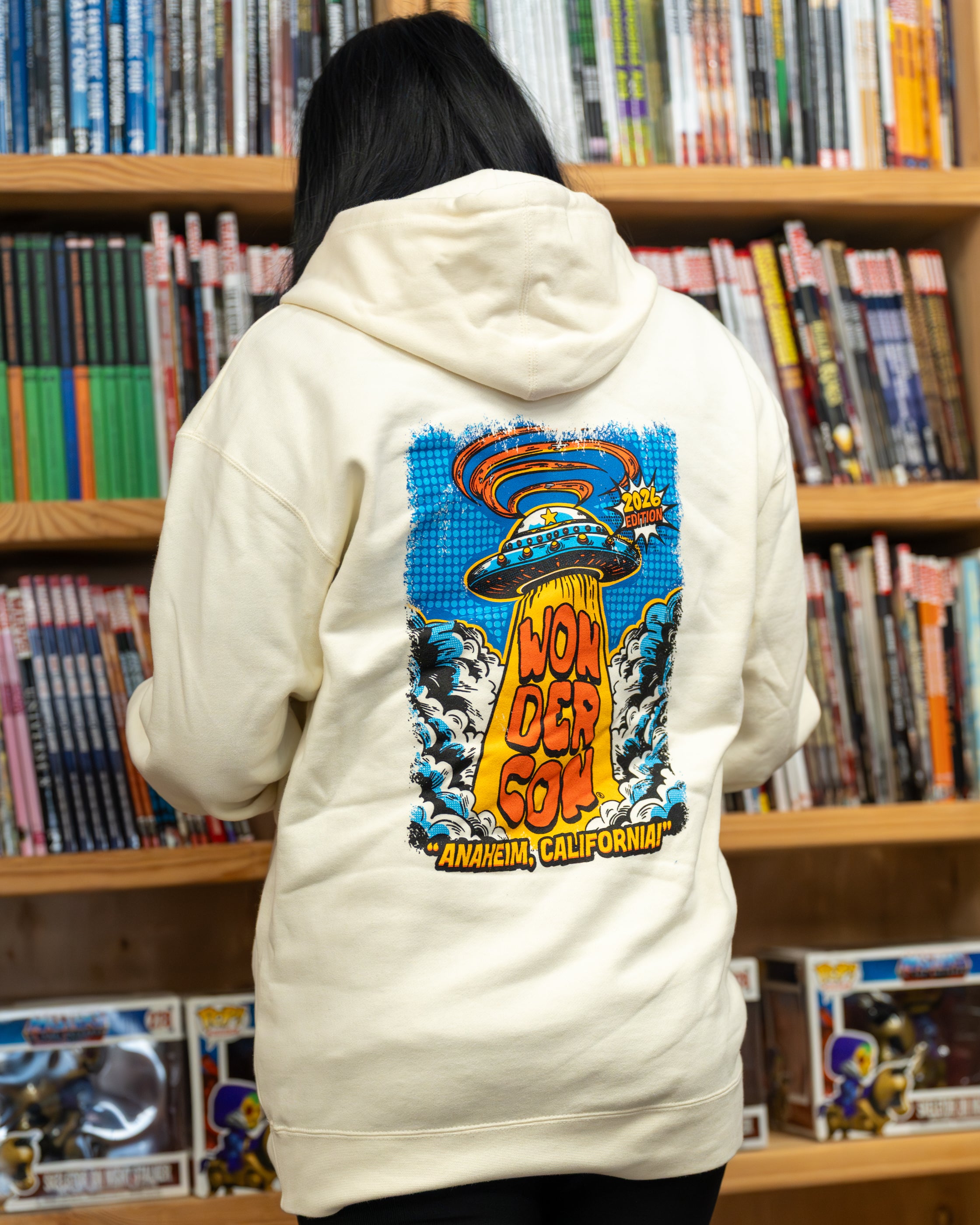 Whether you're exploring the con floor or waiting for your own close encounter, this hoodie keeps you warm, comfy, and totally WonderCon-ready.